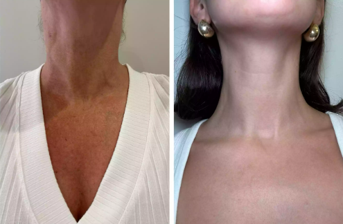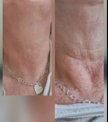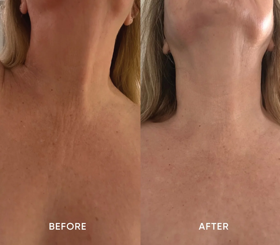 Fine lines and neck wrinkles appear visibly softened.